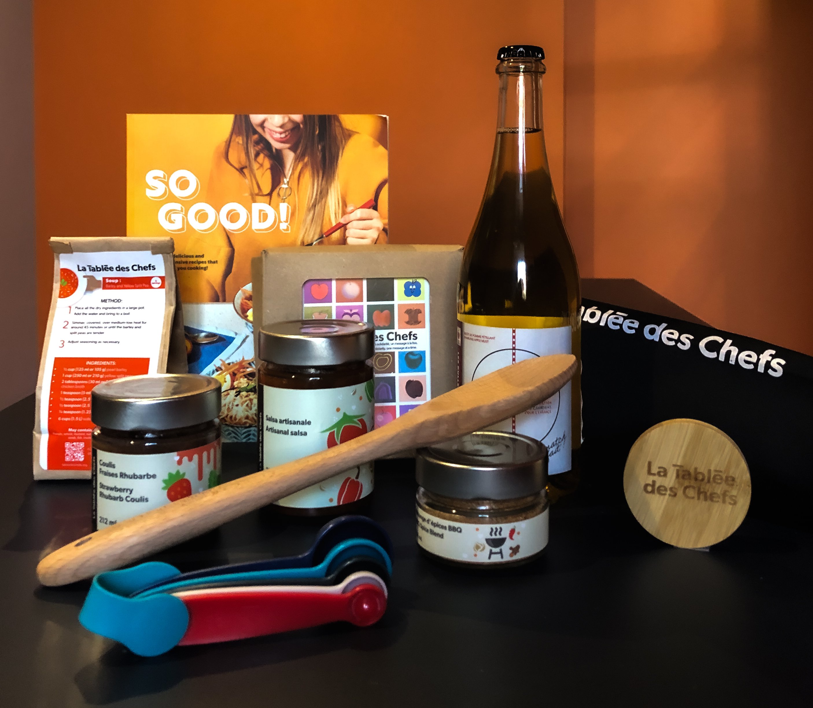 A wooden spoon engraved with « La Tablee des Chefs »